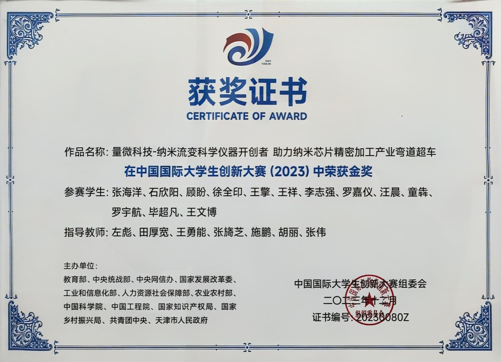 中国国际大学生创新大赛(2023)金奖