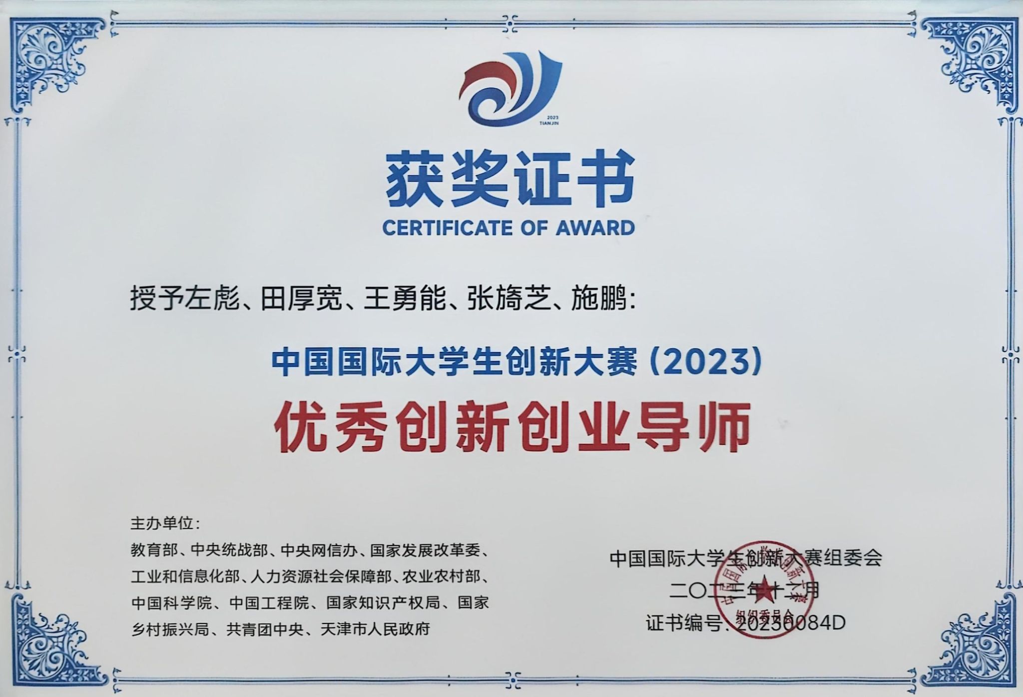 中国国际大学生创新大赛(2023)优秀创新创业导师