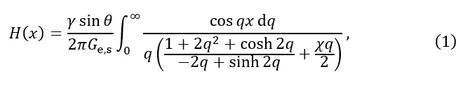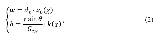 在本工作中(Macromolecules 2025, 24, 13125),他们进一步拓展这一方法,提出通过分析液滴润湿力诱导高分子表面产生“润湿脊”的轮廓来获得橡胶表面层厚度和弹性模量的方法;他们定义描述“润湿脊”形变特征的高度(h)和宽度(w)(图1),基于线性弹性理论模型(公式1),建立了w和h与高分子玻璃体柔性表面厚度(ds)和弹性模量(Ge,s)的定量关系(公式2);实现了玻璃态高分子表面弹性模量这一基本力学特性的测量。