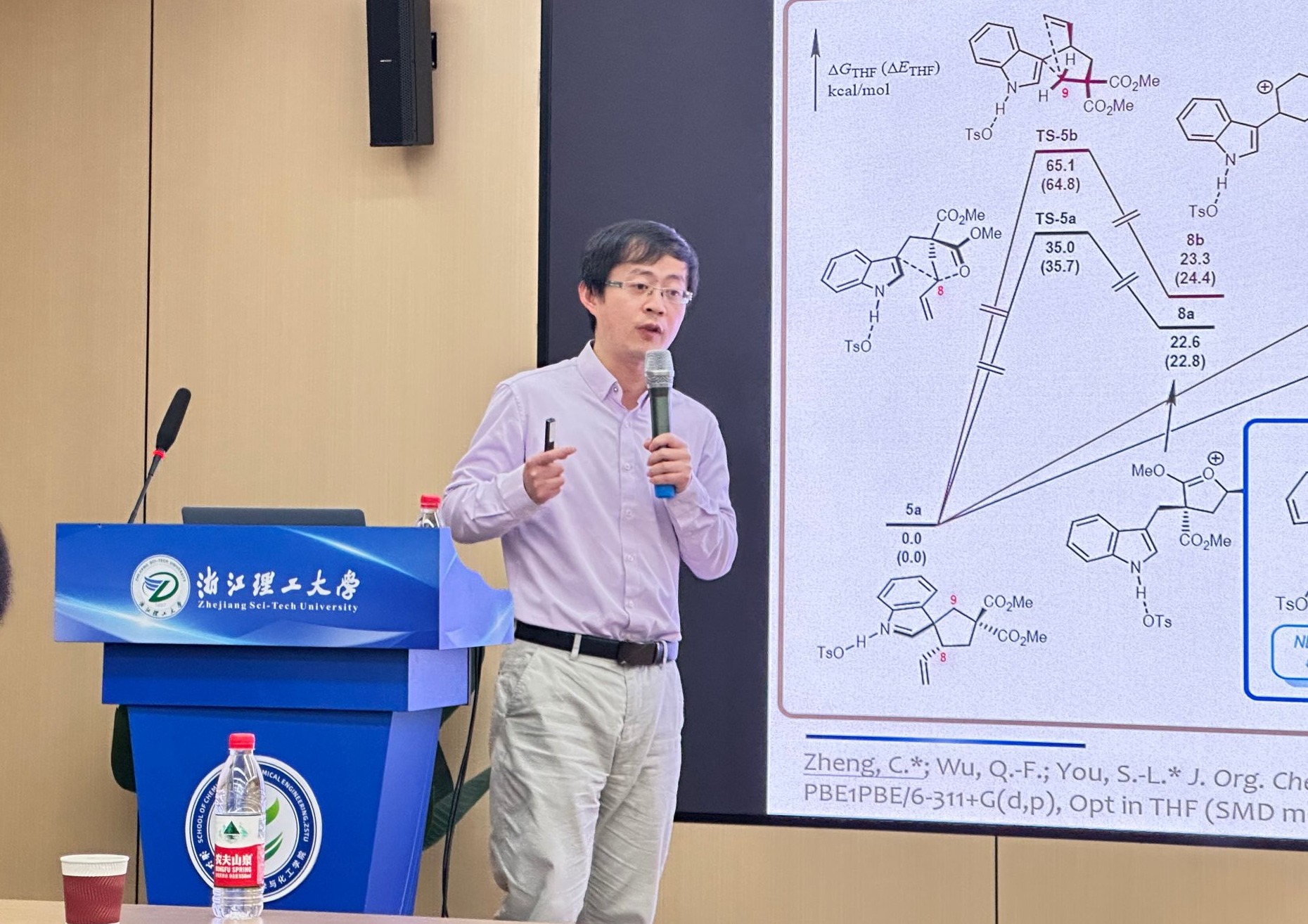 1月21日,中国科学院上海有机化学研究所金属有机化学国家重点实验室郑超研究员应邀访问浙江理工大学化学与化工学院,为师生带来了两场思想盛宴:一场题为“Mechanism-based Regulation of Asymmetric Tsuji-Trost-type Reactions”的前沿学术报告,以及一场名为“有机化学家是怎样‘抬杠’的?——非经典碳正离子的争论和启示”的生动科普讲座。活动由学院左彪教授主持,吸引了六十余位师生积极参与。