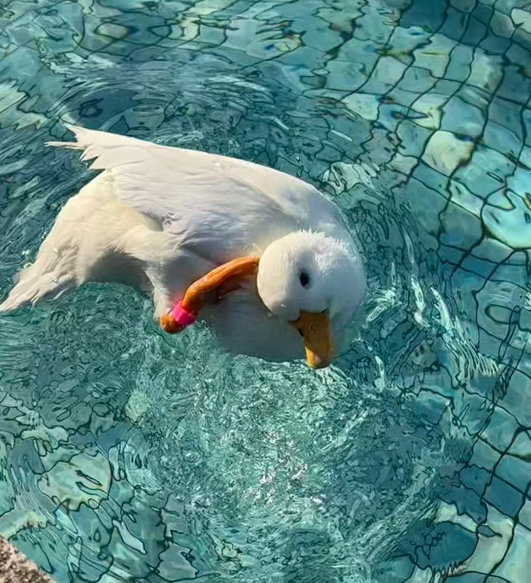On a sunny day, Ya Ge likes to go out for a "schoolwalk" to enjoy the view. She also likes to go for a swim in her "private pool".