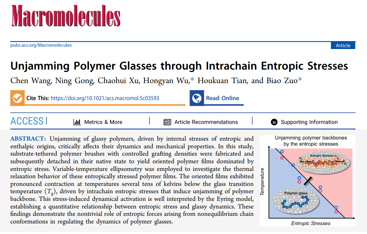 Link:Unjamming Polymer Glasses through Intrachain Entropic Stresses | Macromolecules